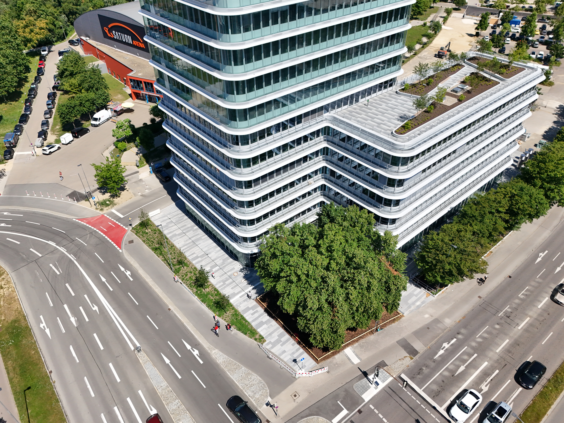 "Was wir heute feiern", so Mirbeth, "ist das Ergebnis von Vertrauen, Mut und einem außergewöhnlichen Teamgeist." Besonders hob Mirbeth die Zusammenarbeit mit der Stadt hervor, die das Projekt im Baugenehmigungs-Verfahren eng begleitet habe. Auch die frühzeitige Beauftragung von "Züblin" im Rahmen eines Team-Concept-Vertrags, die modellgestützte Planung sowie die enge Einbindung interner Abteilungen seien Erfolgs-Faktoren gewesen. Die Rolle des internen Immobilien-Managements unter der Leitung von Dieter Spreng und Stefan Kuffer wurde ausdrücklich gewürdigt.