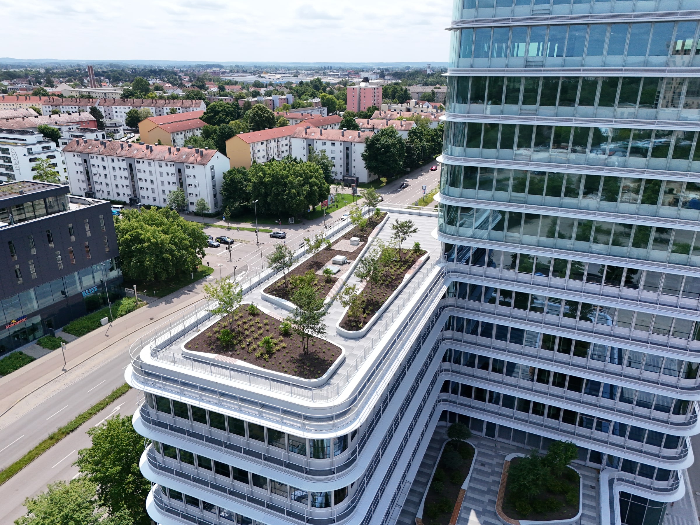 Der Donau-Tower ist nicht nur eine architektonische Land-Marke in unmittelbarer Nachbarschaft zur Saturn-Arena, sondern auch Ausdruck einer modernen Arbeitskultur. Lichtdurchflutete, offene Arbeitsbereiche fördern nach Angaben der Bank die Zusammenarbeit, kurze Wege zwischen den Abteilungen steigern die Effizienz und schaffen neue Räume für Austausch. Die Gestaltung der Innenräume wurde von der Firma Roomarts übernommen, die eine zeitlose und zugleich funktionale Büro-Ausstattung realisierte.