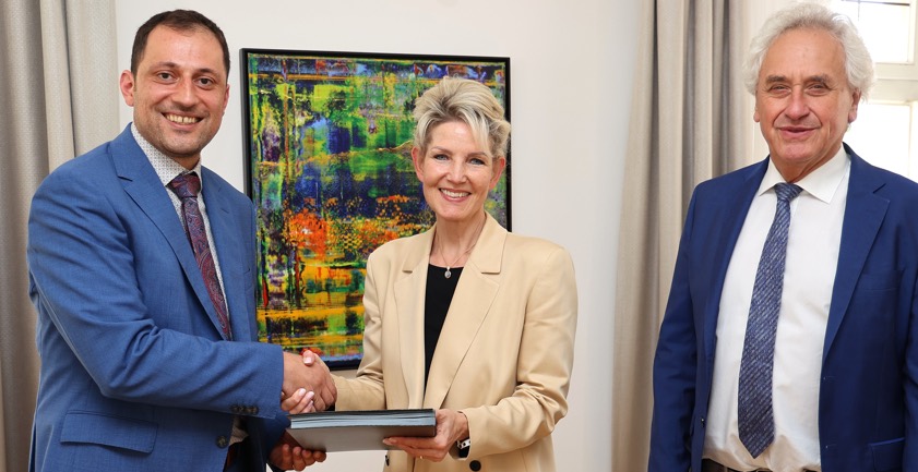 Mesut Mermer (links), Maren Kreuzer und Landrat Helmut Petz.