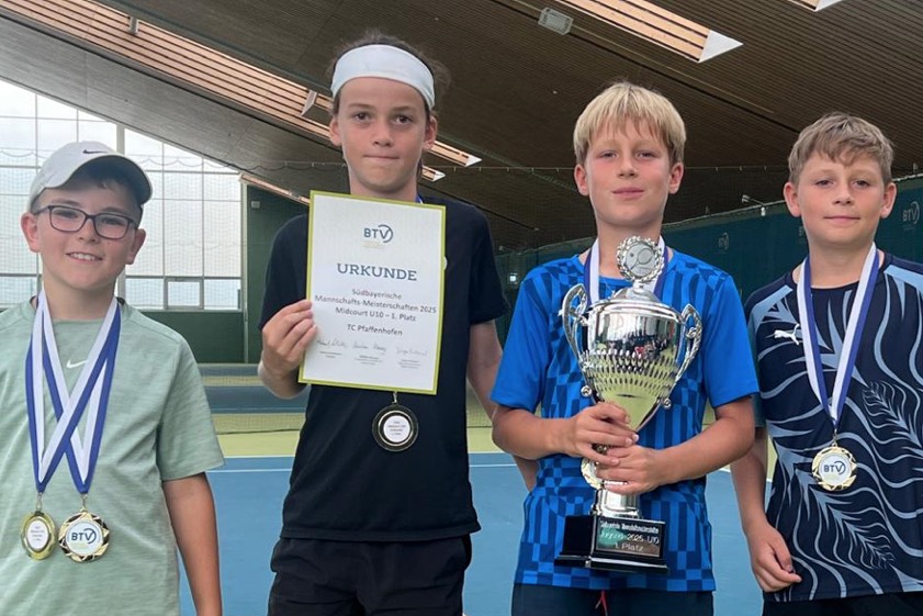 (ty) Das U10-Team des Tennis-Clubs von Pfaffenhofen an der Ilm (TCP) hat am heutigen Samstag einen bemerkenswerten Erfolg errungen: Beim Final-Turnier sicherten sich die Jüngsten des Vereins den ersten Platz und gewannen damit die südbayerische Mannschafts-Meisterschaft. "Was die Jungs in dieser Saison geleistet haben, ist außergewöhnlich", lobt Chris Rauch als Headcoach des TCP: "Sie haben sich nicht nur sportlich, sondern auch als Team enorm weiterentwickelt – das macht uns als Verein stolz."