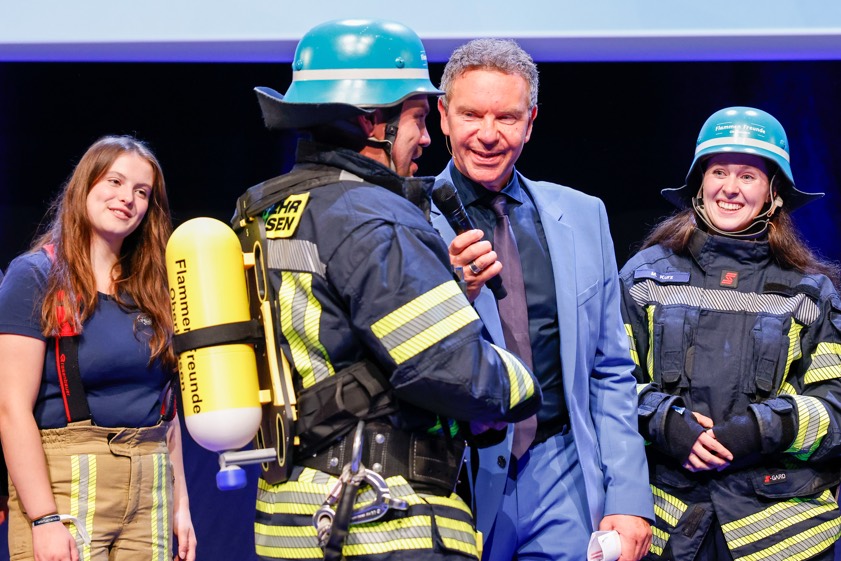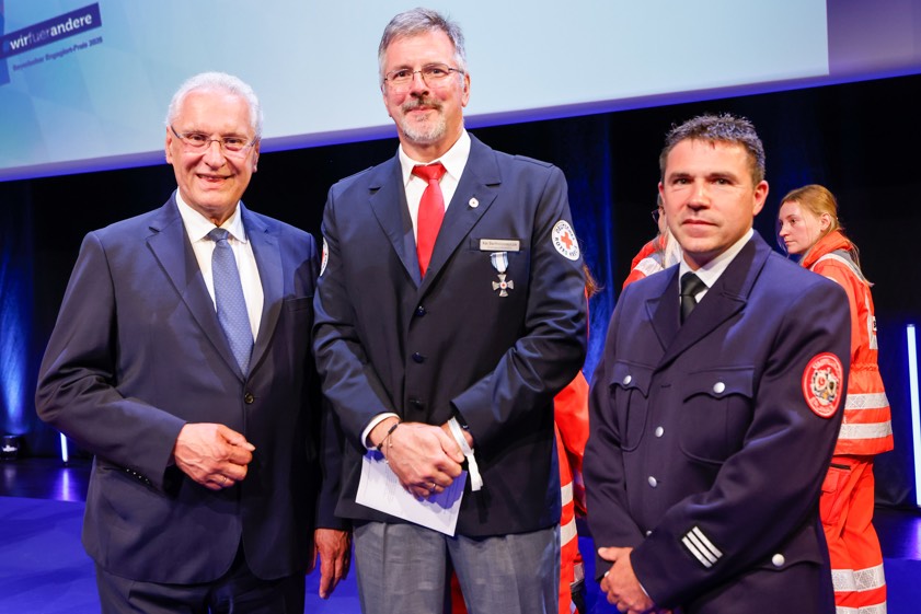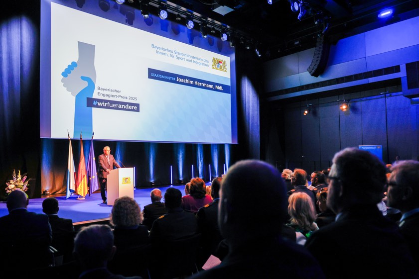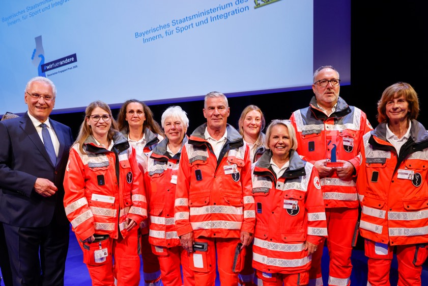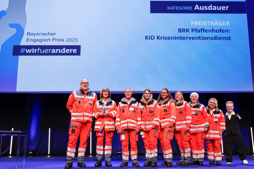 (ty) Joachim Herrmann, der Innenminister des Freistaats, hat am gestrigen Samstag in der Münchner "BMW-Welt" im Rahmen einer Festveranstaltung den "Bayerischen Engagiert-Preis 2025" verliehen, mit dem herausragende Leistungen im Ehrenamt für die Sicherheit der Menschen in Bayern, im Sport und in der Integration gewürdigt werden. In der Kategorie "Ausdauer" ging der Preis an den Krisen-Interventions-Dienst des BRK-Kreisverbands von Pfaffenhofen. Die Auszeichnung erfolgte außerdem in den Kategorien "Herz", "Mut" und "Feuer & Flamme". Zudem wurden zwei Sonderpreise des Innenministers verliehen.