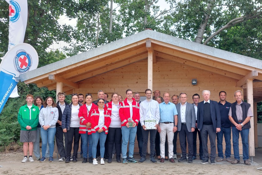 Wegen baulicher Mängel war die 30 Jahre alte Hütte ersetzt worden. Funktionales Gebäude für Wasserwachtler und Technik.