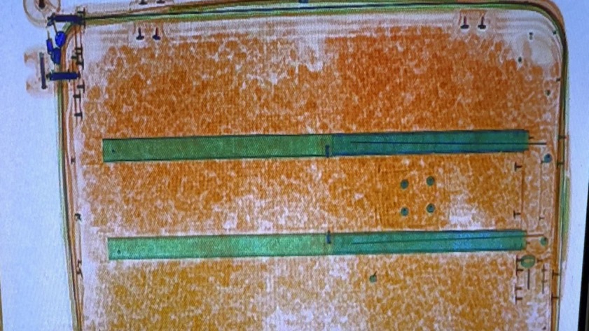 Röntgen-Aufnahme vom Koffer mit Marihuana.