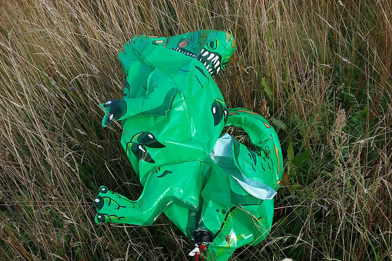 (ty) Eine spannende Entdeckung haben Franziska Sawadsky und ihr Sohn Ben heute früh im brandenburgischen Liebenwalde gemacht. Die beiden fanden einen dinosaurier-förmigen Ballon, der offenbar in Ingolstadt auf die Reise geschickt worden war – damit hätte er rund 480 Kilometer Luftlinie zurückgelegt. Zumindest war an dem Dino ein Zettel befestigt, auf dem steht: „Liebe Grüße aus Ingolstadt.“ Nun hoffen die beiden, dass sich der Absender des Ballons bei ihnen meldet. Folgende Nachricht erreichte uns soeben von den Findern des Ballons: