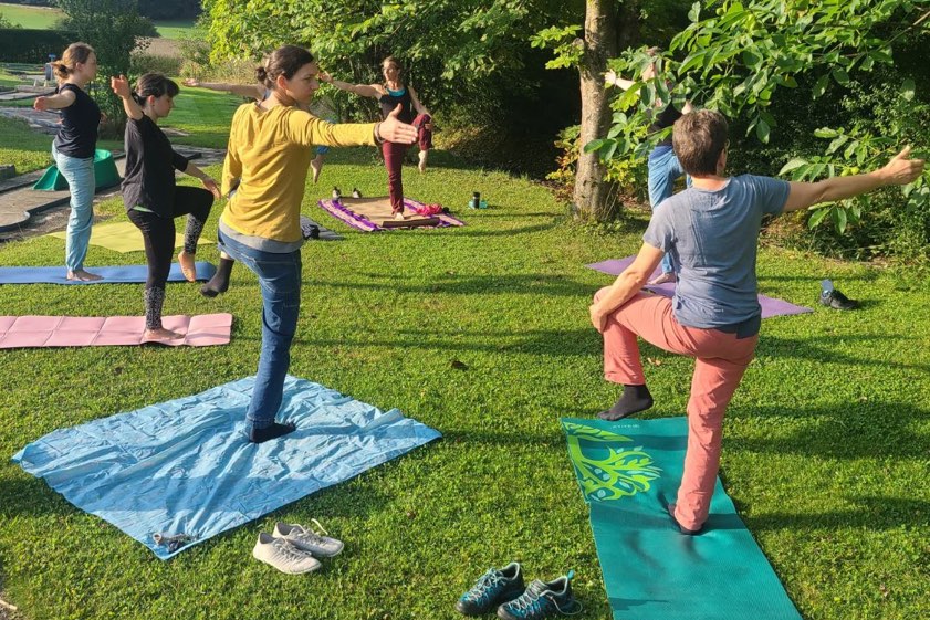 (ty) Erstmals hat die Sektions Pfaffenhofen-Asch des deutschen Alpenvereins (DAV) ein Wochenende unter dem Motto "Yoga und Klettern" im Birgland veranstaltet (Fotos). "Eine perfekte Verbindung von Bewegung, Entspannung und Natur-Erlebnis", heißt es von den Verantwortlichen. Bei einer morgendlichen Yoga-Einheiten auf der Wiese unter freiem Himmel seien Körper und Geist achtsam auf die bevorstehenden Herausforderungen des Klettertags eingestimmt worden. Trotz des wechselhaften Wetters habe man sich die Freude nicht nehmen lassen.