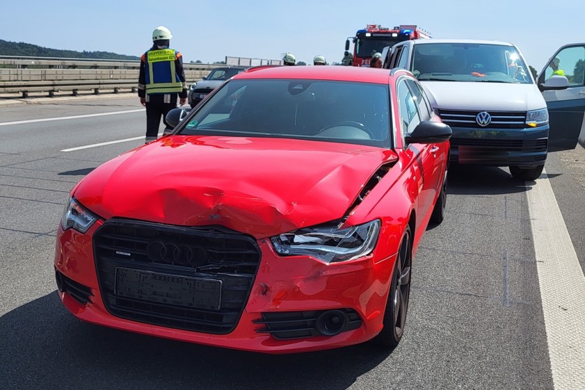 Der 43-Jährige habe habe noch versucht, nach links auszuweichen. Dabei habe er mit der rechten Seite seines Mercedes-GLE den VW-Caddy an dessen linkem Heck gestreift. Anschließend sei der Mercedes noch gegen das linke Heck des Audi-A3 geprallt. Der 63-Jährige sei dann mit seinem Audi-A6 ins Heck des Mercedes geprallt; dabei habe der Mann sich leichte Verletzungen zugezogen. Ebenfalls leichte Verletzungen habe die 22 Jahre alte Beifahrerin in dem Audi-A3 erlitten. "Beide benötigten keine sofortige ärztliche Behandlung", so die Polizei. Der Audi-A6 sei nicht mehr fahrbereit gewesen.