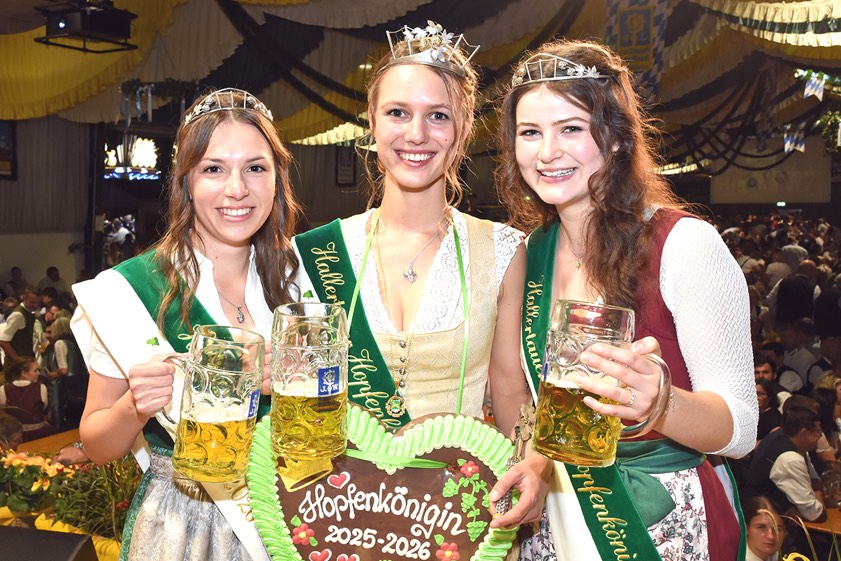 (ty) Die 25 Jahre alte Theresa Eisenrieder aus Aiglsbach-Oberpindhart ist am gestrigen Abend im Rahmen des Volksfests in Wolnzach zur neuen Hallertauer Hopfenkönigin gewählt worden. Franziska Mitterhuber (20) aus dem Schweitenkirchener Ortsteil Frickendorf wurde zur Vizekönigin gekürt und Anna Kappelmeier (24) aus Geisenfeld-Brunn ist die neue Hopfenprinzessin. Zusammen bilden die jungen Frauen in der Saison 2025/26 das so genannte Dreigestirn für den Hallertauer Hopfen.