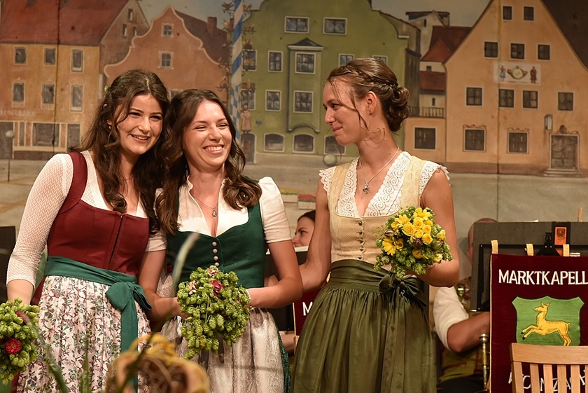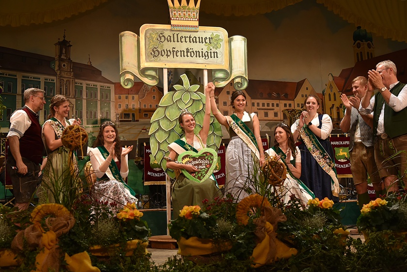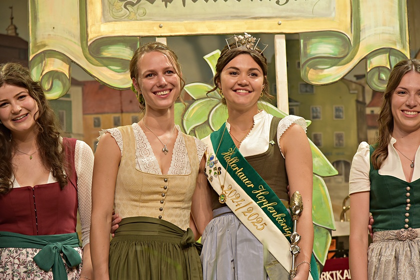 Unmittelbar nach den Entscheidungen strömten Ehrengäste auf die Bühne, um den neuen Repräsentantinnen des "Grünen Golds" der Hallertau zu gratulieren – darunter neben anderen Produkt-Königinnen auch der hiesige Bürgermeister Jens Machold und Karl Pichlmeyer, der Vorsitzende des Hallertauer Hopfen-Pflanzer-Verbands, sowie Adi Schapfl, der Präsident des Verbandes deutscher Hopfen-Pflanzer. Sie wünschten dem neuen "Dreigestirn" viel Spaß in ihren Ämtern sowie viele spannende Termine und Veranstaltungen.