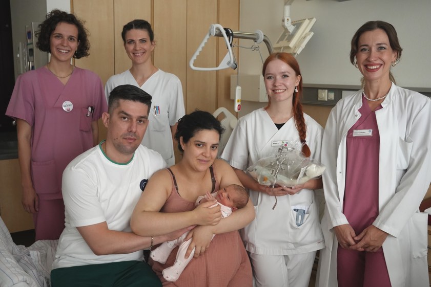 Herzliche Glückwünsche sowie ein Geschenk überbrachten im Klinikum auch die stellvertretende Stations-Leiterin Sarah Geier und Pflege-Fachfrau Amelie Zerhaft sowie Oberärztin Dilara Karabiber und Hebamme Hanna Obermeier. "Wir setzen in unserem Mutter-Kind-Zentrum auf eine familienorientierte Betreuung", betont Professor Babür Aydeniz, der Direktor der Frauen-Klinik. "Uns liegt sehr viel daran, dass sich die Familien vor, während und nach der Geburt gut bei uns aufgehoben fühlen."