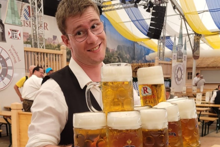 Normalerweise vermittle Alexander Gelner den Studierenden sowohl Fachwissen als auch wissenschaftliche Methoden, heißt es aus der THI. "Derzeit serviert er Hendl und Bier." Der Professor selbst erklärt zu diesem Engagement: "Meine Frau ist dieses Jahr in Elternzeit, also springe ich für sie ein – Familien-Einsatz, ganz offiziell." Statt im Hörsaal steht er also dieser Tage zwischen Biertischen, Blasmusik und Festzelt-Publikum – und erlebt hautnah, wie trubeliger Schicht-Dienst auf dem zweitgrößten Volksfest in ganz Bayern funktioniert.