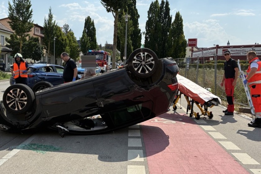 (ty) Ein schwerer Verkehrsunfall, der aber weitaus schlimmer hätte ausgehen können, hat sich am gestrigen Nachmittag in Neuburg an der Donau ereignet. Gekracht hat es gegen 14.30 Uhr auf der Ingolstädter Straße. Eine 29 Jahre alte Pkw-Lenkerin hatte den Brems-Vorgang des vor ihr fahrenden 21-Jährigen übersehen und setzte zu einem Ausweich-Manöver an, das misslang: Die Frau überschlug sich, nachdem es zum Auffahr-Crash gekommen war. Sie selbst sowie auch der junge Mann kamen zum Glück ohne schwerere Verletzungen davon, beide wurden aber in ein Krankenhaus gebracht.