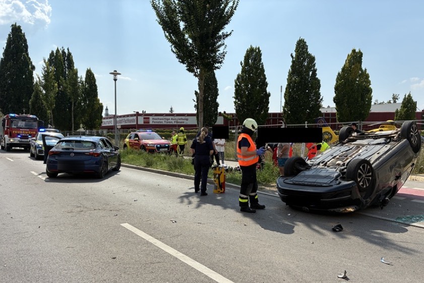 Nach Angaben der örtlichen Polizeiinspektion war der 21 Jahre alte Neuburger mit einem Opel stadteinwärts unterwegs und musste vor seinem angekündigten Abbiege-Vorgang verkehrsbedingt bremsen. Die nachfolgende 29-Jährige habe das übersehen. Erst im letzten Moment habe die aus dem Landkreis Eichstätt stammende VW-Lenkerin das Geschehen realisiert. Daraufhin habe sie versucht, dem Opel noch auszuweichen. Diese Aktion misslang der Frau allerdings: Der VW habe zunächst mit dem linken Vorderrad das rechte Heck des Opel erfasst; daraufhin habe sich der VW überschlagen.