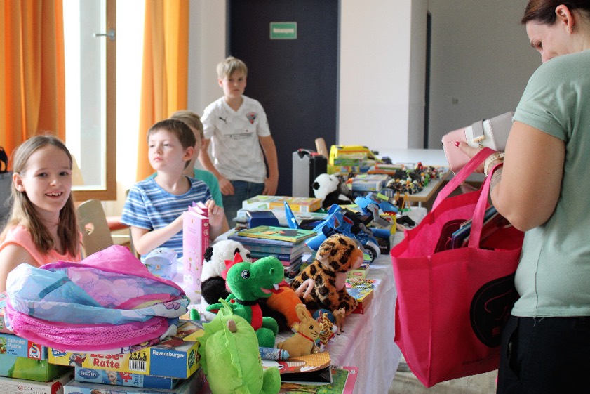 In der Turnhalle der Grund- und Mittelschule können alle interessierten Buben und Mädchen ihre Sachen anbieten oder auf Schnäppchen-Jagd gehen.