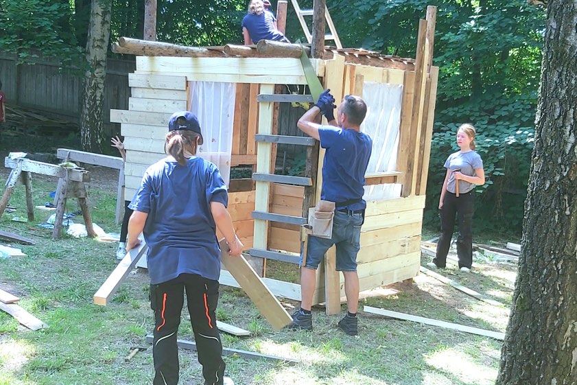 (ty) Im Rahmen des Ferienpass-Programms, das der Kreisjugendrings (KJR) anbietet, haben sich Kinder wieder bei der Arbeiter-Wohlfahrt (AWO) in Pfaffenhofen als Baumeister und Zimmerer betätigen können. Gewerkelt wurde beim AWO-Vereinsheim an der Schrobenhausener Straße. Insgesamt 20 Buben und Mädchen packten in vier Gruppen jeweils unter Anleitung eines Erwachsenen kräftig an. Unterstützt wurde das Ganze von der hiesigen Firma Roßner, die das Holz spendierte. Nach Angaben der Verantwortlichen waren die Sprösslinge mit Feuereifer bei der Arbeit und dachten mitunter sogar an die Innen-Ausstattung der Häuser. Zur Mittagspause habe man sie regelrecht überreden müssen.