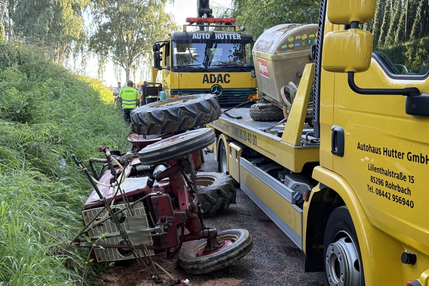 (ty) Schwere Verletzungen hat ein 39 Jahre alter Traktor-Fahrer bei einem heftigen Arbeitsunfall erlitten, der sich am späten gestrigen Nachmittag in Rohrbach ereignet hat. Wie die örtlich zuständige Polizeiinspektion aus Pfaffenhofen berichtet, arbeitete der Mann in einem Hopfenfeld oberhalb einer Böschung. Nachdem sich die Hang-Kante gelöst habe, habe sich das landwirtschaftliche Fahrzeug mitsamt der angehängten Hopfen-Spritze mehrfach überschlagen. Das Gespann sei schließlich seitlich zum Liegen gekommen.