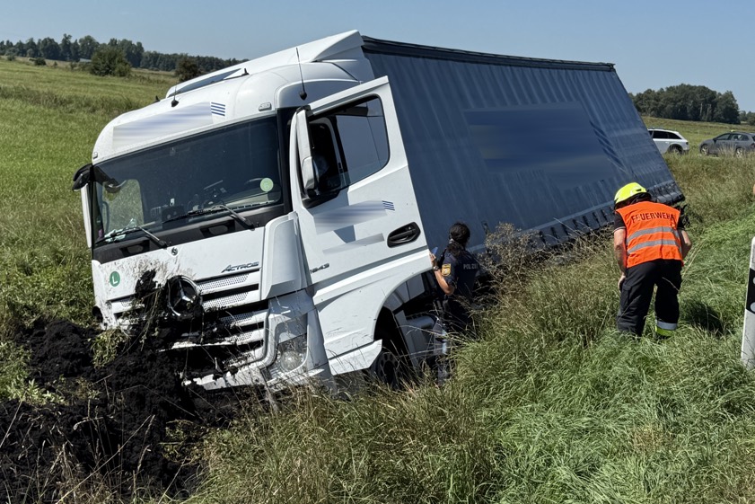 Der Unfall geschah gegen 11.40 Uhr. Nach Erkenntnissen der Polizei war ein 55-jähriger Lkw-Fahrer aus Südosteuropa mit dem Sattelzug auf der Staatsstraße 2048 von Probfeld in Richtung Pobenhausen unterwegs. Trotz roten Blinklichts habe er den dortigen Bahn-Übergang überquert, bei dem die Schranken noch geöffnet gewesen seien. Im weiteren Verlauf sei der unbeladene Sattelzug in einer langgezogenen Links-Kurve nach rechts ins Bankett geraten und anschließend von der Fahrbahn abgekommen. Nach mehreren Metern sei das Gespann im Bereich eines Wassergrabes zum Stehen gekommen.