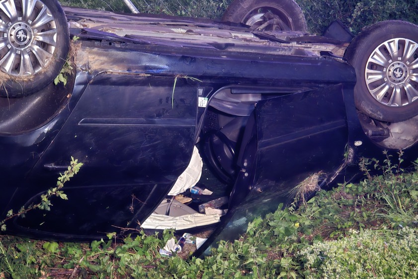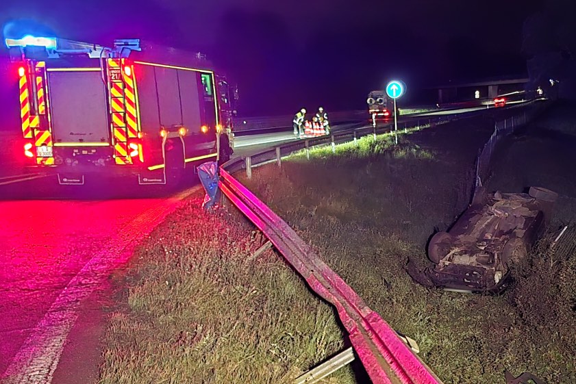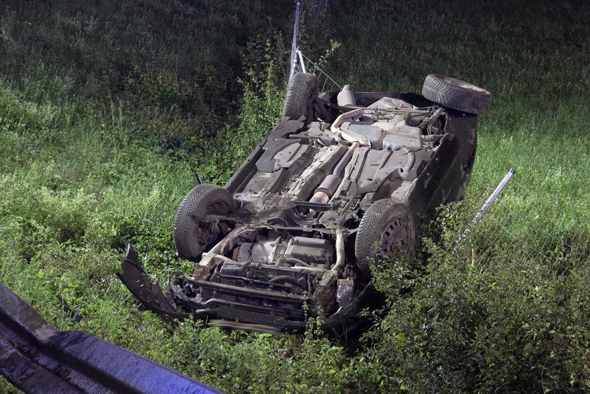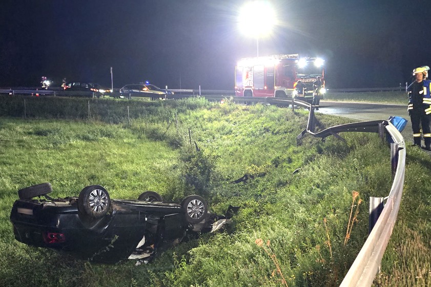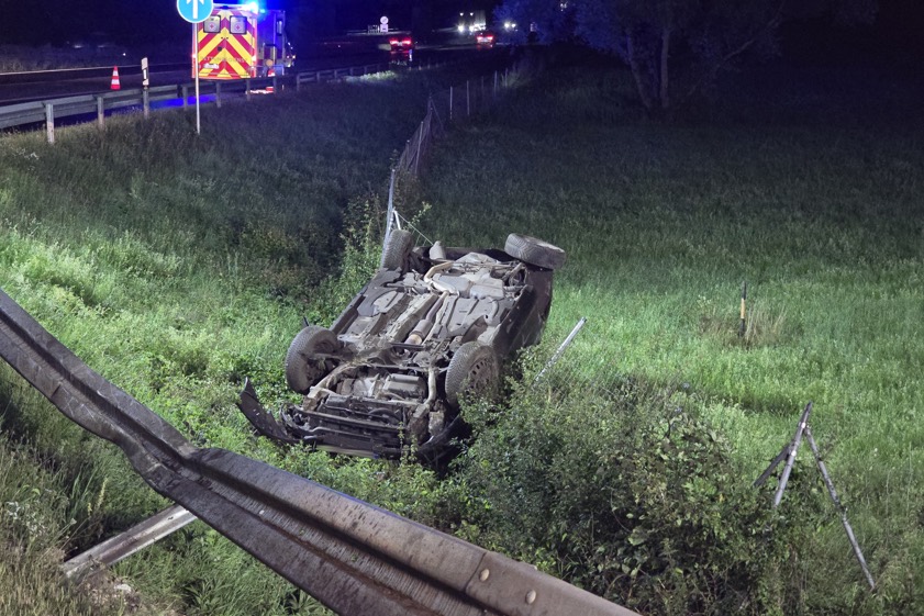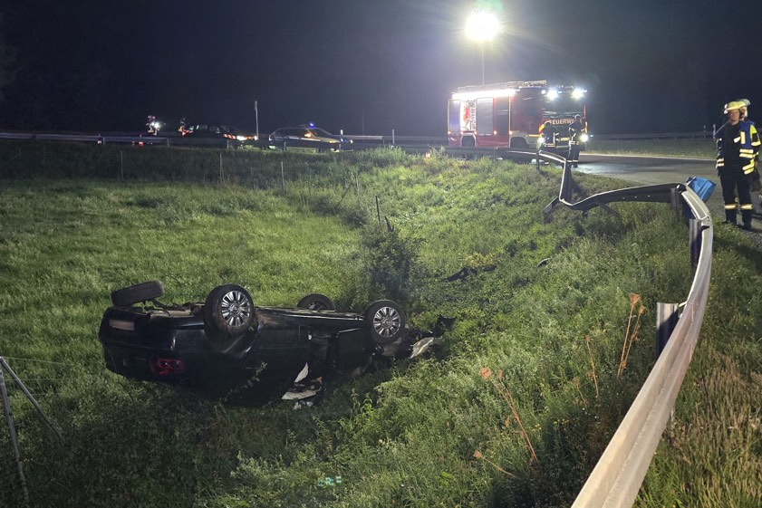35-Jähriger verlor gestern Abend beim Überholen die Kontrolle über seinen Wagen. Der Pkw überschlug sich und landete auf dem Dach neben der Autobahn.