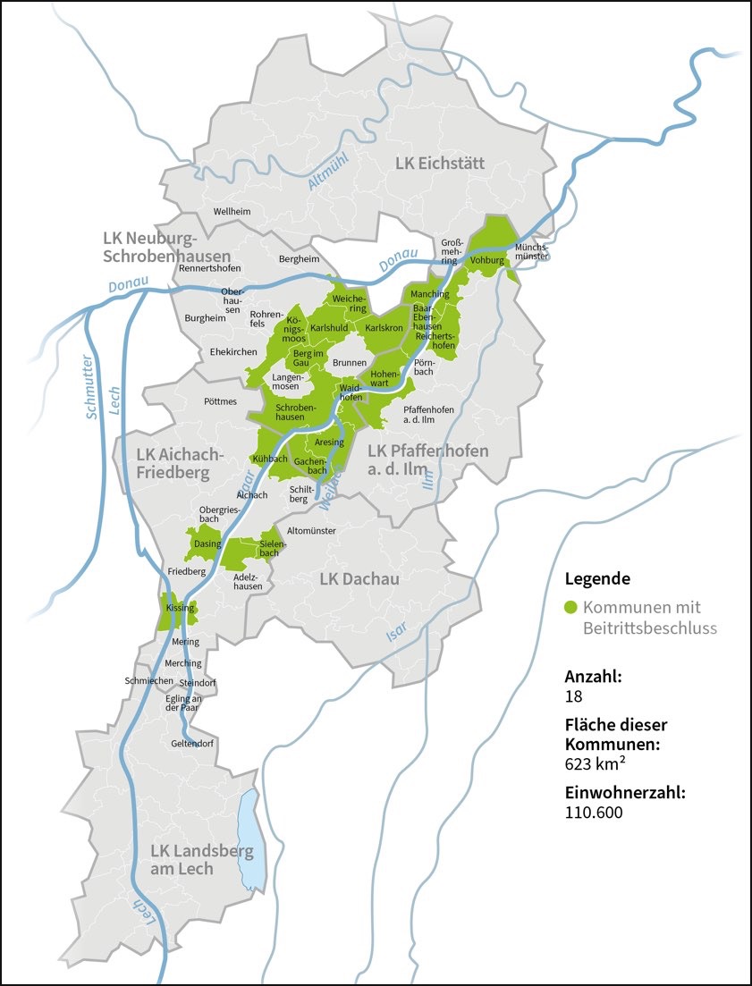 Gürtner stehen Stellvertreter aus jedem der drei beteiligten Landkreise zur Seite: Dasings Gemeinde-Chef Andreas Wiesner vertritt den Kreis Aichach-Friedberg, Weicherings Bürgermeister Thomas Mack den Kreis Neuburg-Schrobenhausen und Bürgermeister Michael Franken aus Reichertshofen den Kreis Pfaffenhofen. Der Hohenwarter Bürgermeister Jürgen Haindl als Schriftführer und der Karlshulder Bürgermeister Michael Lederer als Schatzmeister komplettieren den auf zwei Jahre gewählten geschäftsführenden Vorstand des neuen Vereins.