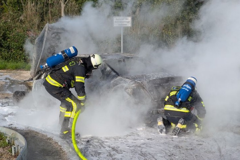 Wagen geriet gestern während der Fahrt in Richtung Süden in Flammen, 36-Jähriger steuerte ihn in eine Behelfs-Ausfahrt. Verletzt wurde zum Glück niemand.