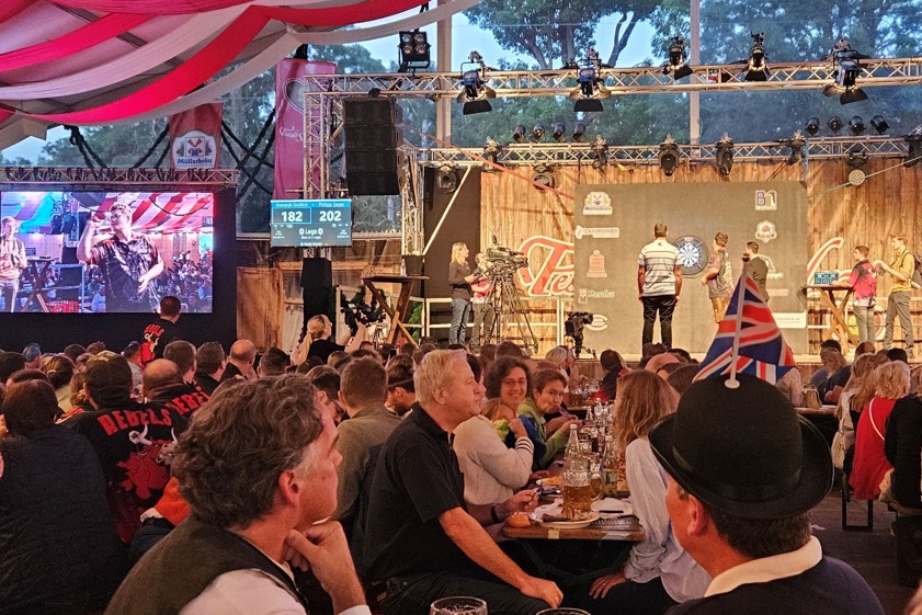 "Auf dem Programm steht natürlich wieder das Einzel-Turnier mit den beiden Profis Durrant und Rodriguez sowie sechs Spielern des Rebel's-Steeldart-Cup 2025. Das Qualifikations-Turnier sei heuer zweigeteilt gewesen. Am 30. August habe der erste Termin stattgefunden, bei dem alle Spieler teilnahmeberechtigt gewesen seien, während am 31. August ausschließlich reine Hobbyspieler zum Zuge gekommen seien. Starten werde der Müllerbräu-Dart-Abend auf dem Volksfest erneut mit dem örtlichen Bürgermeister Thomas Herker (SPD) und dem Pfaffenhofener Landrat Albert Gürtner (FW), "die gemeinsam mit den Profis im Doppel antreten".