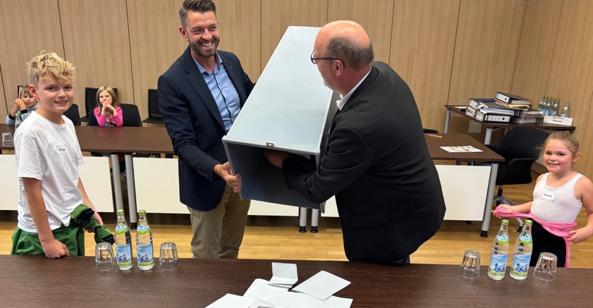 Begleitet von den Bürgermeistern Georg Ott (Ilmmünster) und Wolfgang Hagl (Hettenshausen) durchstreiften die Buben und Mädchen das Rathaus-Gebäude und warfen neugierige Blicke hinter Türen, die ihnen sonst meist verschlossen bleiben. In altersgerechter Sprache erklärten die beiden Gemeinde-Chefs den jungen Gästen, was in den verschiedenen Abteilungen passiert – vom Einwohnermeldeamt über Kämmerei und Bauamt, bis hin zum Bürgermeister-Büro. Ein Highlight war dann die Wahl der "Kinder-Bürgermeisterin" und deren Stellvertreterin.