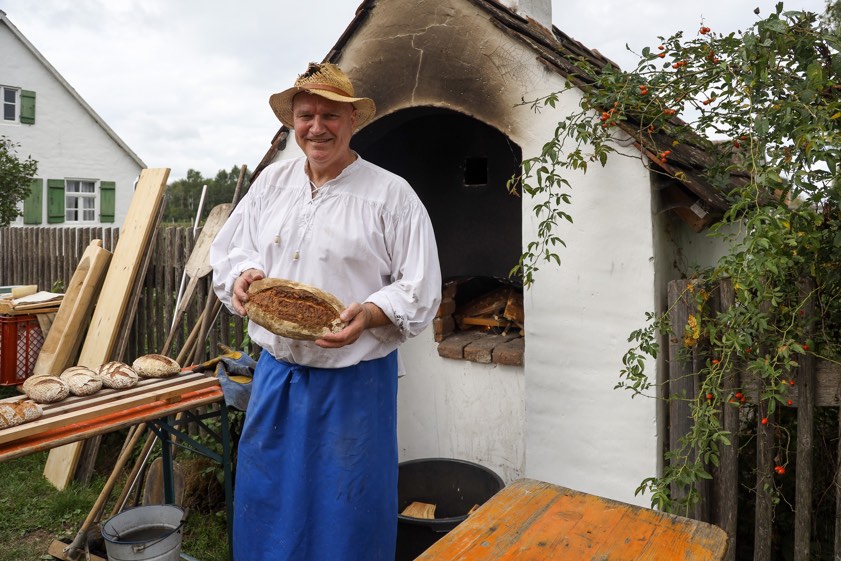 Nach Angaben der Donaumoos-Stiftung, die für das Freilicht-Museum und die dortigen Umwelt-Bildungsstätte zuständig ist, wird das Event am Sonntag um 10.30 Uhr mit einem feierlichen Fest-Einzug eröffnet – angekündigt sind drei bayerische Königinnen. Den ganzen Tag über gebe es historische Vorführungen zum Anschauen und Mitmachen, ein abwechslungsreiches Kinder-Programm sowie leckere Schmankerl von der Museums-Gaststätte Rosinger-Hof und der "Eistüte" aus Grasheim. "Vor den Museums-Häusern zeigen Korbmacher, Seiler, Senser, Kartoffel-Dämpf-Kolonne und eine alte Dresch-Maschine, wie altes Handwerk funktioniert." Daneben werde Brot im Holzofen gebacken und Butter gemacht.