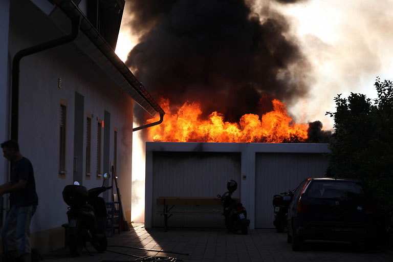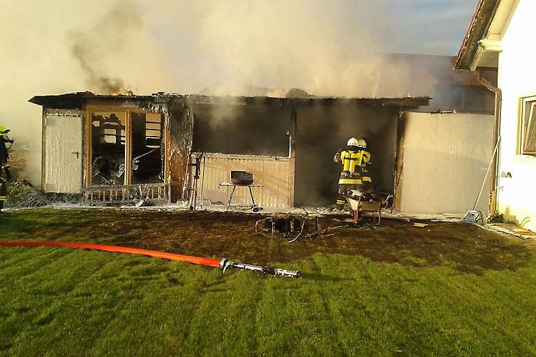 Aus ungeklärter Ursache stand heute am frühen Abend eine Garage voll in Flammen