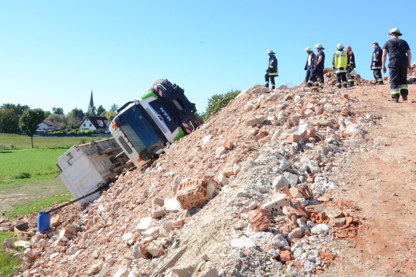 Gegen 12 Uhr kam es auf einem Areal an der Schulstraße – in der Nähe der neuen Grund- und Mittelschule – zu dem Betriebsunfall. Der hier befindliche Bauschutt-Berg war durch Abriss-Arbeiten in Zusammenhang mit dem Schul-Neubau entstanden. Der im Raum Senden (Kreis Neu-Ulm) wohnende 58-Jährige steuerte nach Erkenntnissen der Polizei seinen Kipper rückwärts auf diesen Hügel. Dabei sei der Lastwagen aus Fahrersicht offenbar zu weit nach rechts geraten. Während des Abladens sei der Lkw ohne Fremdbeteiligung zunächst seitlich umgekippt und schließlich abgestürzt.