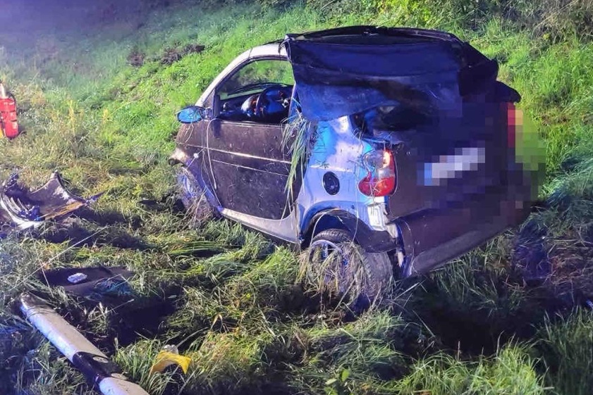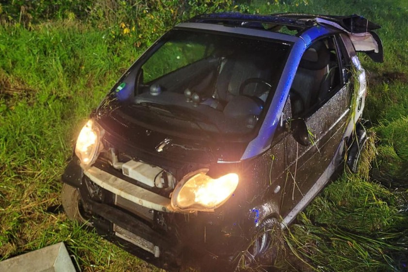 Ohne Fremdbeteiligung verlor die Frau gestern Abend die Kontrolle über ihren Wagen. Sie hatte aber wohl noch Glück im Unglück.