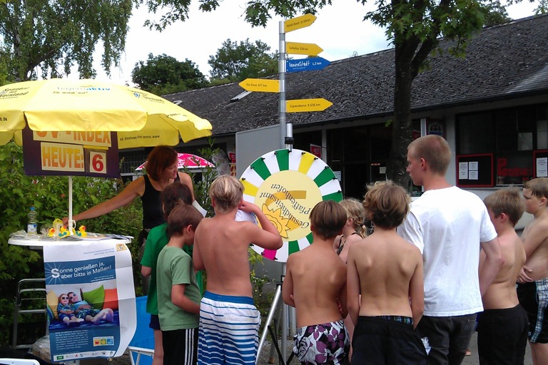 Vor allem auch die jungen Badegäste waren am Thema „Sonne(n) mit Verstand“ sehr interessiert. Foto: Weltge