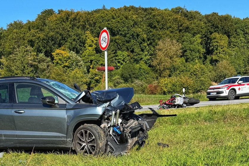 Der Biker kollidierte heute auf der Staatsstraße 2230 mit dem Pkw eines 82-Jährigen, der offenbar zu einem Überhol-Manöver angesetzt hatte.