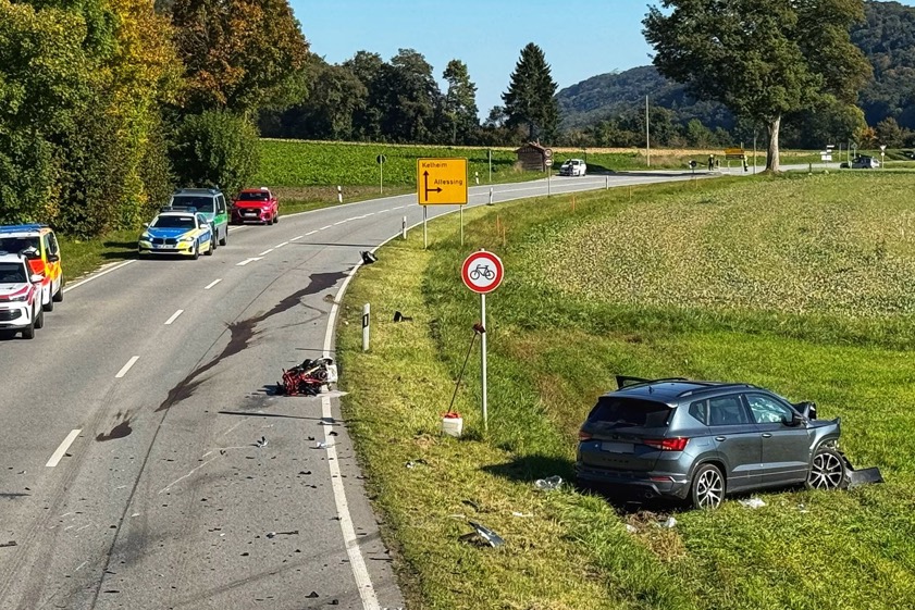 (ty) Ein tödlicher Verkehrsunfall hat sich am heutigen Nachmittag auf der Staatsstraße 2230 zwischen Riedenburg und Kelheim ereignet. Ums Leben gekommen ist ein 69 Jahre alter Motorrad-Fahrer. Das Unglück geschah laut Polizei gegen 14.30 Uhr auf Höhe von Essing beziehungsweise Altessing – und zwar offenbar infolge eines Überhol-Manövers, zu dem ein 82 Jahre alter Pkw-Lenker angesetzt hatte. Der entgegenkommende Biker kollidierte frontal mit dem Auto des Rentners und wurde dabei so schwer verletzt, dass er noch vor Ort starb. Die Straße war bis in den Abend komplett gesperrt.