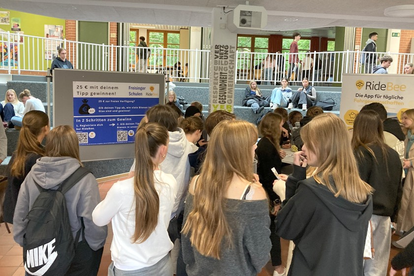 (ty) Mit einem großen Launch-Event an mehreren weiterführenden Schulen in Freising ist jetzt die neue Mitfahr-App "RideBee" für die Schul-Community offiziell gestartet. Ziel der App ist es laut Landratsamt, "Wege zur Schule sowohl für Schülerinnen und Schüler als auch für Lehrkräfte und Schulpersonal sowie in der Freizeit klimafreundlicher, kostengünstiger und unkomplizierter zu gestalten und hierzu eine Schul-Gemeinschaft zu etablieren." Die App solle die Schüler sowie Lehrer folgender Bildungsstätten vernetzen: die Schulen im Lernviertel Freising an der Wippenhauser Straße – Berufsschule, FOS und BOS, Camerloher-Gymnasium und Wirtschaftsschule, das Josef-Hofmiller-Gymnasium, das Dom-Gymnasium, die Karl-Meichelbeck-Realschule und die Realschule "Gute Änger".