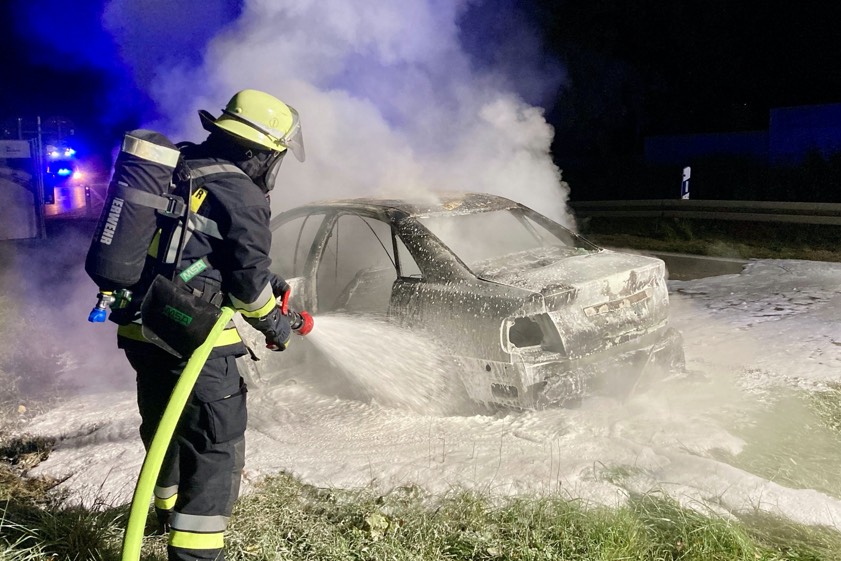 (ty) Der Pkw eines 41-Jährigen ist am gestrigen Abend durch einen Brand auf der A9 kurz vor der Autobahn-Anschluss-Stelle Ingolstadt-Nord komplett zerstört worden. Wie die örtliche Verkehrspolizei-Inspektion heute berichtet, habe der aus der Gemeinde Manching stammende Monteur nach dem Einschalten der Heizung Flammen in seinem Auto entdeckt. Sich selbst und seinen Rucksack mit seinen Wertgegenständen habe der 41-Jährige noch retten können, bevor das Fahrzeug in Vollbrand geraten sei. Zum Glück sei der Mann unverletzt geblieben.