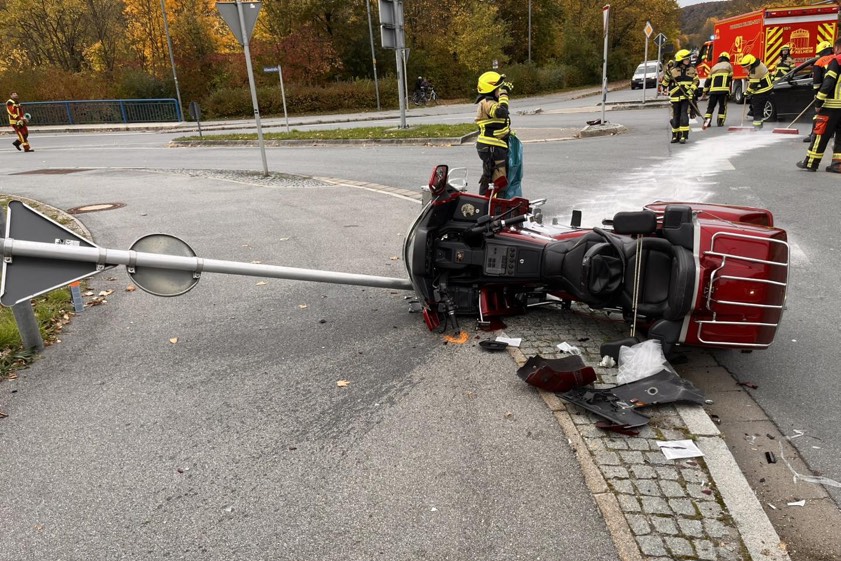 Durch den daraus resultierenden Zusammenstoß zwischen dem Motorrad und dem Pkw trug der 62-Jährige laut heutiger Mitteilung leichte Verletzungen davon. Der an den beiden Fahrzeugen entstandene Sachschaden wurde von Streifenbeamten insgesamt im unteren fünfstelligen Euro-Bereich angesiedelt. Der Pkw-Lenkerin droht jetzt eine Strafanzeige wegen fahrlässiger Körperverletzung. Auch die örtliche Feuerwehr war an der Unglücksstelle im Einsatz; die Floriansjünger regelten den Verkehr und reinigten die Fahrbahn.