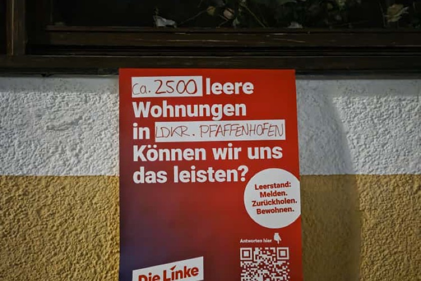 (ty) "Trotz hoher Mieten und akuter Wohnungsnot stehen in Bayern laut Zensus fast 300 000 Wohnungen leer", erklärt "Die Linke". Auch im Kreis Pfaffenhofen seien aktuell rund 2500 Wohnungen ungenutzt – zwei Drittel davon länger als ein Jahr, so die Partei weiter. Deren hiesiger Ortsverband ergänzt: "Im Stadtzentrum von Pfaffenhofen selbst stehen zudem über 15 teils traditionsreiche Gebäude leer, mehr als die Hälfte davon seit mehr als fünf Jahren." Die Linke wolle "diesen Leerstand nicht hinnehmen". In der Nacht zum vergangenen Montag seien im gesamten Freistaat deshalb Plakate an leer stehenden Häusern und Wohnungen angebracht worden, um "Missstände" sichtbar zu machen – auch in Pfaffenhofen.