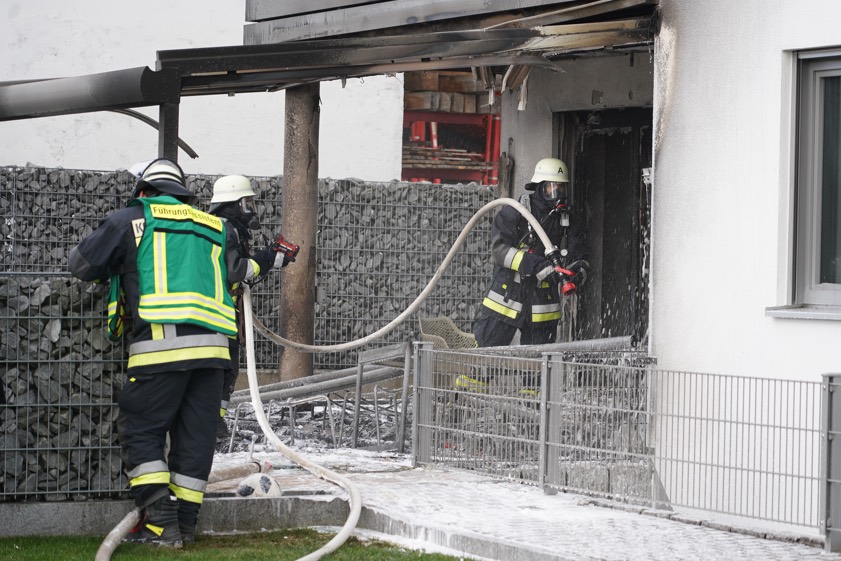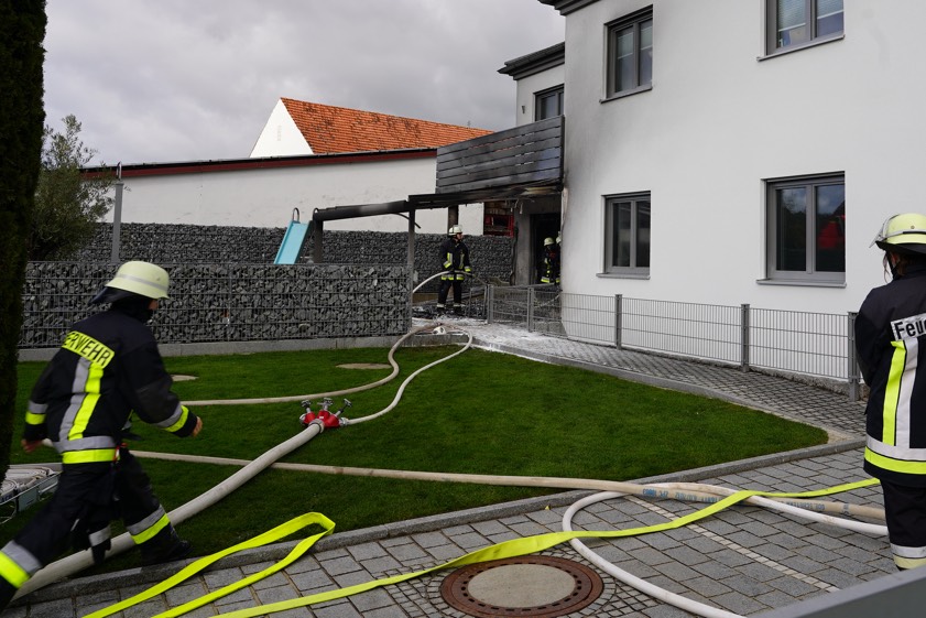 Den ersten Erkenntnissen zufolge, so der Polizei-Sprecher am Nachmittag, sei der Brand auf der Terrasse des Hauses ausgebrochen und habe dann auf das Erdgeschoss des Wohngebäudes übergegriffen. Die alarmierten Feuerwehrleute hatten die Situation schnell unter Kontrolle und gelöscht, anschließend wurden in den Räumlichkeiten noch Entrauchungs-Maßnahmen durchgeführt. Laut Polizei hatten Anwohner auch von einem lauten Knall berichtet. Angesichts dieser Erstmeldung sei ein Polizei-Hubschrauber, der sich zufällig in der Nähe befunden habe, hinzugerufen worden, um sich einen besseren Überblick verschaffen zu können.