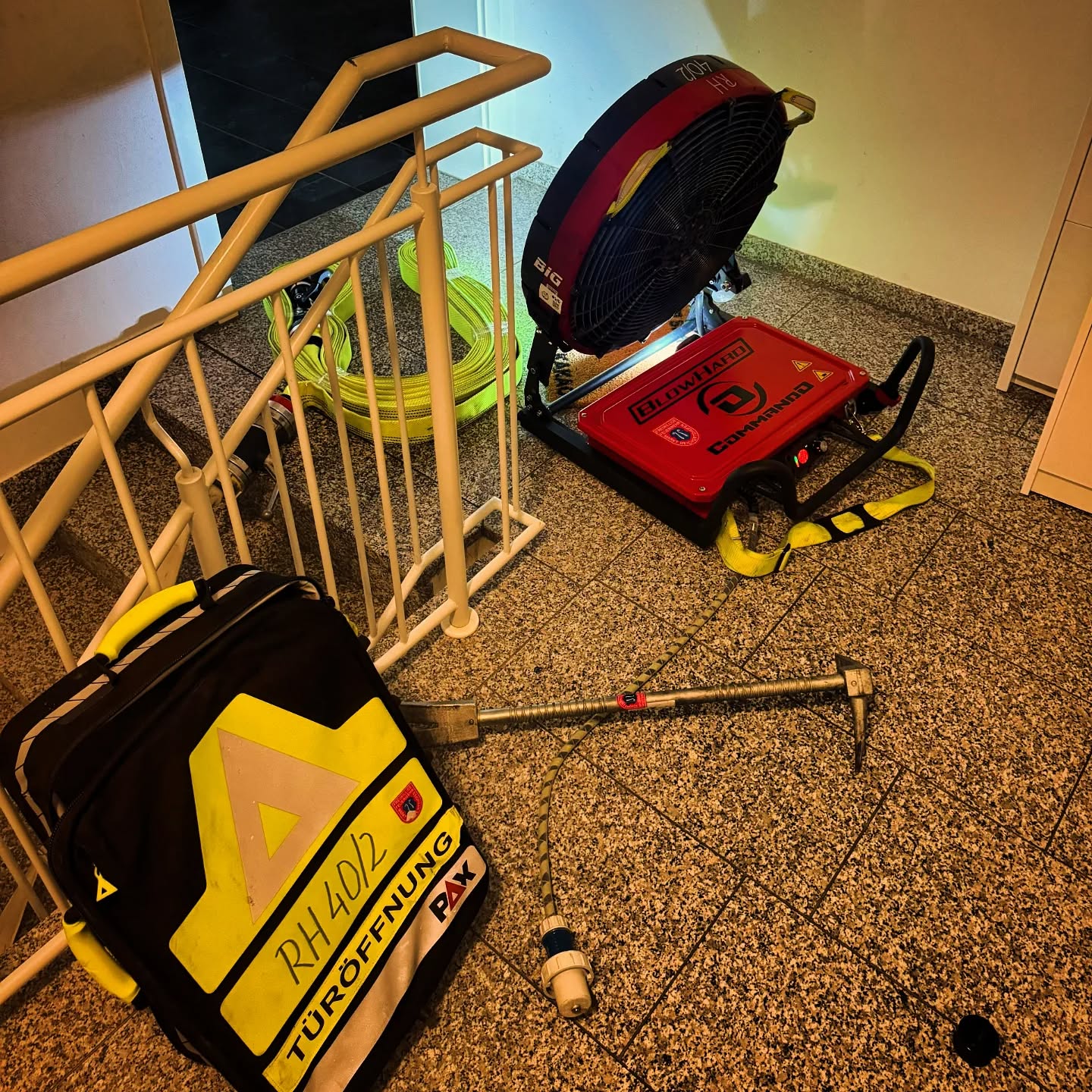 Rauchmelder lösten gestern Abend aus, Floriansjünger rückten an. Mülleimer war vermutlich wegen Zigaretten-Kippe in Flammen geraten.