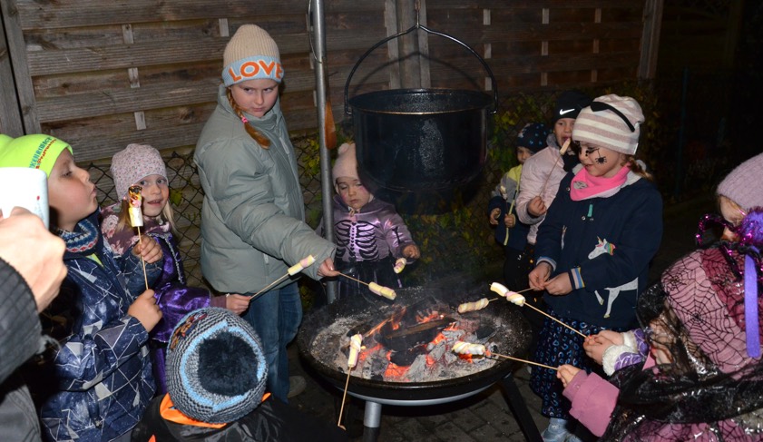 Dort wurde zur Stärkung unter anderem ein schmackhafter Eintopf nebst Brot oder Semmel serviert; dazu gab es verschiedene Getränke für Groß und Klein. Später konnten die Sprösslinge selbst Marshmallows an der Feuerschale grillen, sich bei Musik und Tanz vergnügen oder einfach auf dem Anwesen spielen und herumtollen. Die Eltern unterhielten sich indes angeregt – unter anderem über eine Neuauflage des Spektakels im nächsten Jahr und ein Nachbarschafts-Fest im Sommer.