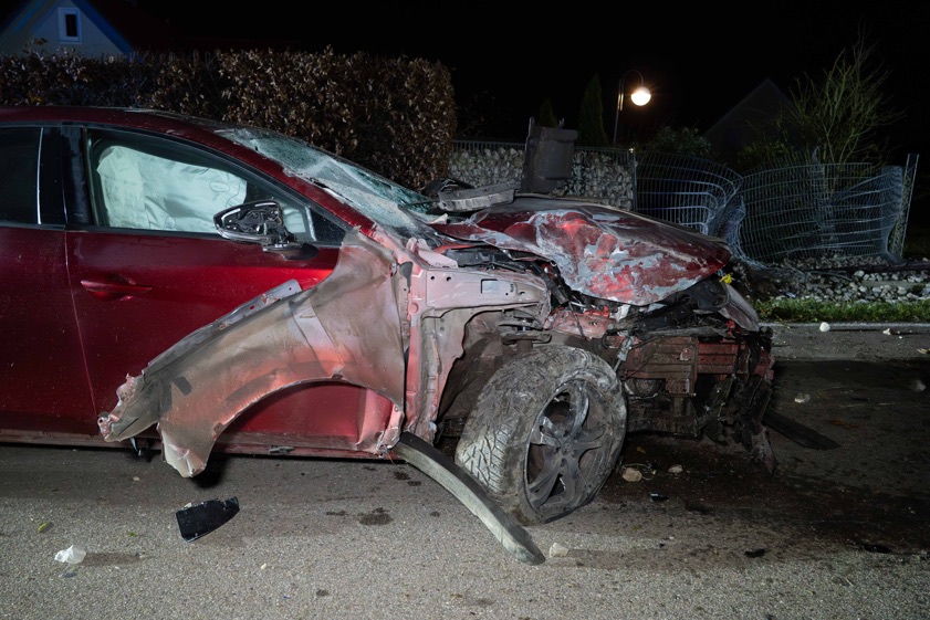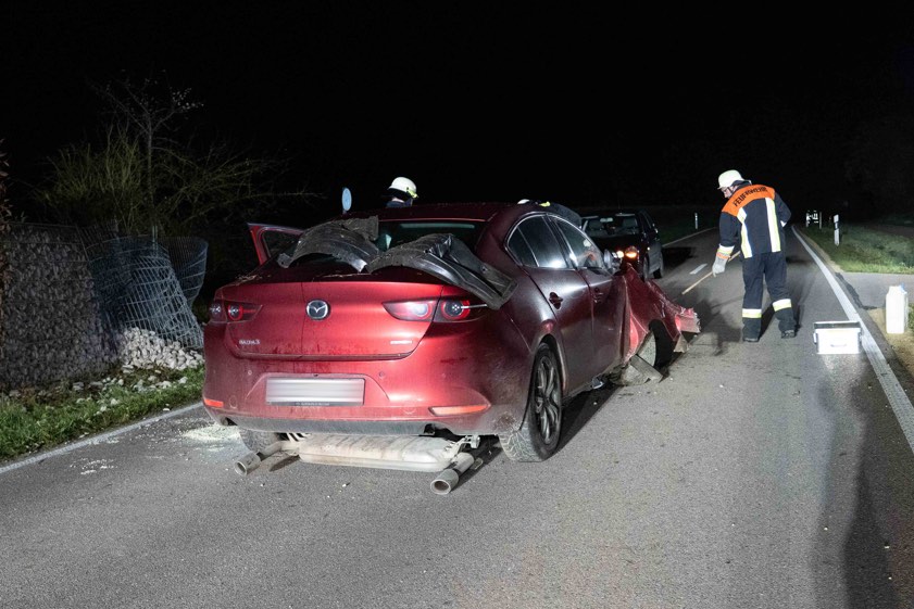 (ty) "Zu schnell dran und alkoholisiert" gewesen ist laut Polizei ein Pkw-Lenker, der am gestrigen Abend im Gemeinde-Bereich von Schrobenhausen einen schweren Verkehrsunfall gebaut hat. Der 33-Jährige selbst sowie sein 23 Jahre alter Beifahrer trugen Verletzungen davon. Wie die örtliche Polizeiinspektion heute berichtet, war der aus dem Gemeinde-Bereich von Schrobenhausen stammende Mann mit einem Mazda auf der Kreisstraße ND14 – von Hörzhausen her kommend – in Richtung Sandizell unterwegs, als es krachte.