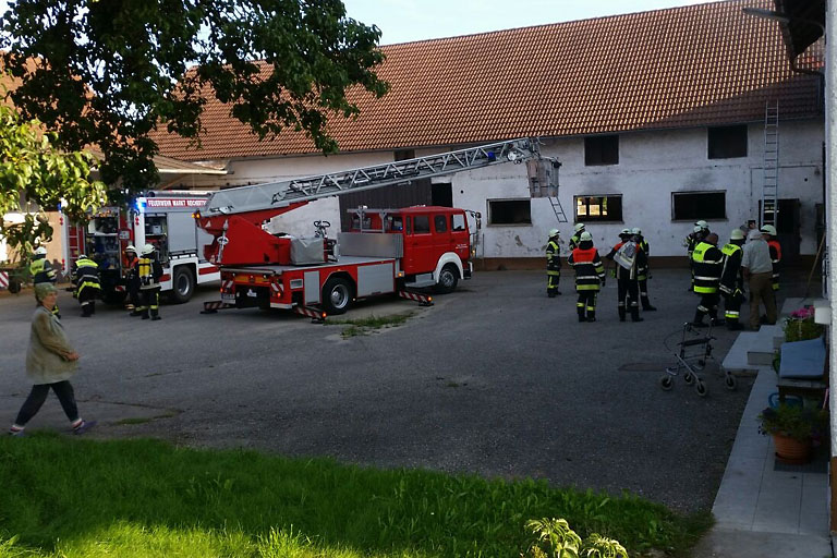 (ty) Zu einem Brand in einem landwirtschaftlich genutzten Gebäude in Hög bei Reichertshofen wurden heute um 18.13 Uhr die Feuerwehren aus Hög, Reichertshofen, Langenbruck, Winden am Aign und Fahlenbach gerufen. Vor Ort stellte sich heraus, dass nur ein Kompressor der heiß gelaufen war und für die starke Rauchentwicklung verantwortlich war, da die Isolierung verschmort war. Die Brandstelle wurde über die Drehleiter mit der Wärmebildkamera kontrolliert und anschließend abgekühlt. Ebenfalls vor Ort waren die Einsatzleitung Rettungsdienst mit mehreren Rettungswagen und die Polizei.