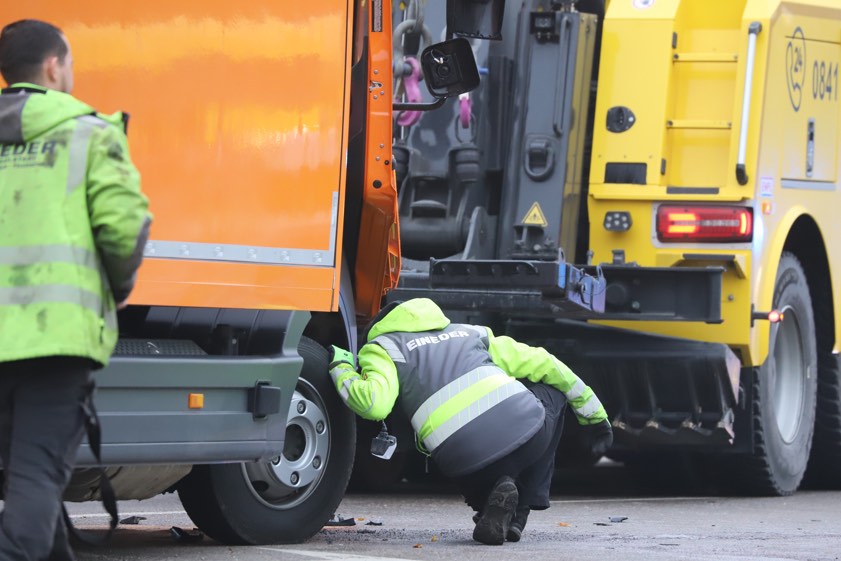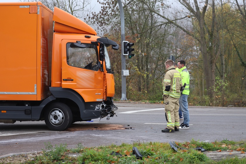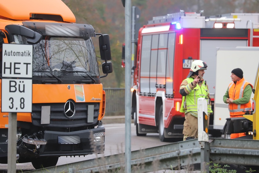 Lkw-Lenker (58) nutzte laut Polizei eine unbeschrankte Abbiege-Spur des Gegenverkehrs für ein Abbiege-Manöver. Er und sein Beifahrer (21) wurden in eine Klinik gebracht.