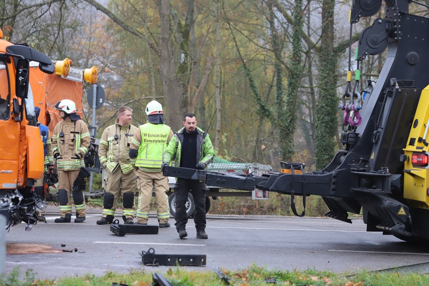 Durch den Zusammenstoß mit dem Zug war der Lkw laut Polizei um fast 180 Grad gedreht worden und mit dem Heck gegen eine Ampel-Anlage gestoßen. Der Lastwagen sei nicht mehr fahrbereit gewesen und habe abgeschleppt werden müssen. Der Schaden an dem Lkw wurde auf 10 000 Euro geschätzt, der an der Ampel-Anlage auf 1000 Euro, der an dem Zug auf 25.000 Euro. Neben Beamten von der örtlichen Polizeiinspektion und von der Bundespolizei waren der Rettungsdienst, das Technische Hilfswerk (THW), ein Krisen-Interventions-Team sowie die Feuerwehren aus Eichstätt, Schernfeld und Möckenlohe im Einsatz.