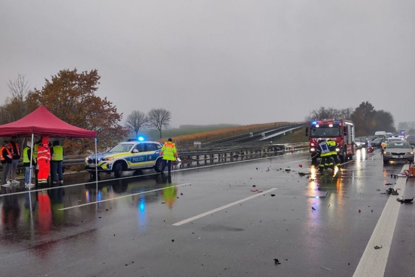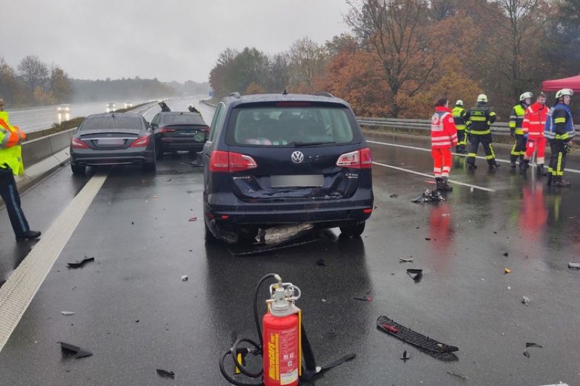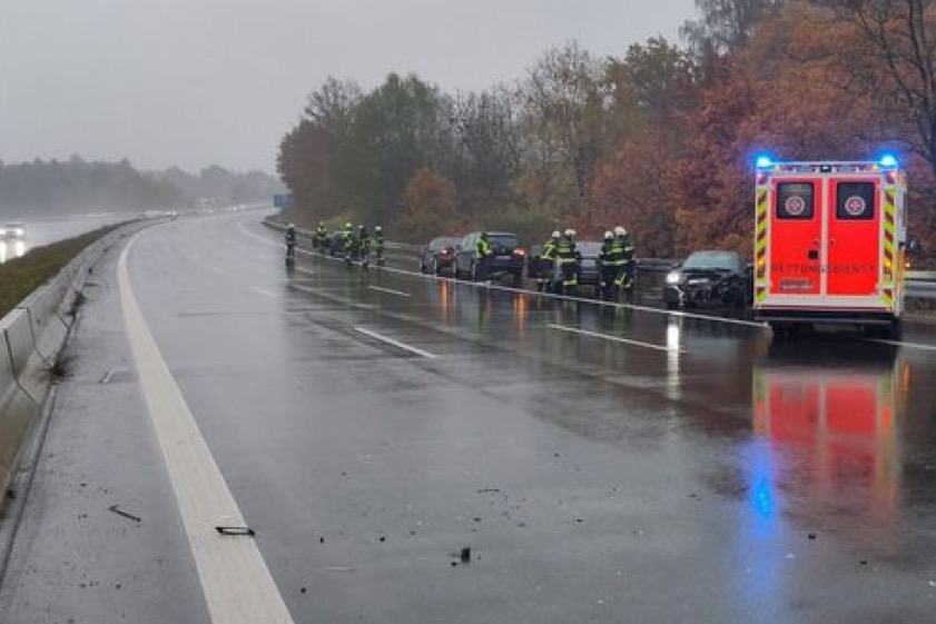 Durch diese Kollisionen seien Trümmer auf der Autobahn verteilt worden. Die nachfolgenden Verkehrsteilnehmer bremsten laut Polizei jeweils ab. Dabei sei es zu zwei Auffahr-Unfällen gekommen. Alle beteiligten Wagen seien nicht mehr fahrbereit gewesen und deshalb abgeschleppt worden. Wegen der Bergungs- und Reinigungs-Maßnahmen sei die A9 in Richtung München zeitweise gesperrt gewesen. Die Feuerwehr aus Langenbruck war zur Unterstützung der Polizei sowie zu Räumungs- und Absicherungs-Maßnahmen vor Ort. 23 Floriansjünger waren fast zwei Stunden im Einsatz.