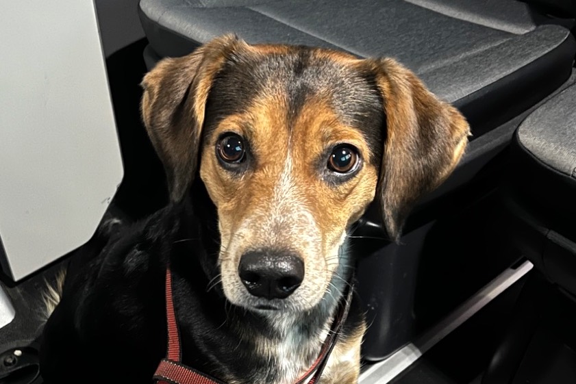 Dort habe sie sich von einer mit Wiener-Würstchen ausgerüsteten Streifenbeamtin bestechen lassen. Nach erfolgtem Vertrauens-Aufbau und dank Tipps von einer Hundeführerin der Polizei sei es gelungen, der Hündin eine Leine anzulegen. Über das Haustier-Register "Tasso" sei dann die Vierbeiner-Besitzerin ausfindig gemacht worden. Frauchen habe ihre "Bella" schließlich dankbar in Empfang genommen. Während eines zwischenzeitlichen Kurzaufenthalts in einem Streifenwagen entstand das hier gezeigte Foto, das die Polizeiinspektion aus Dachau heute herausgegeben hat.