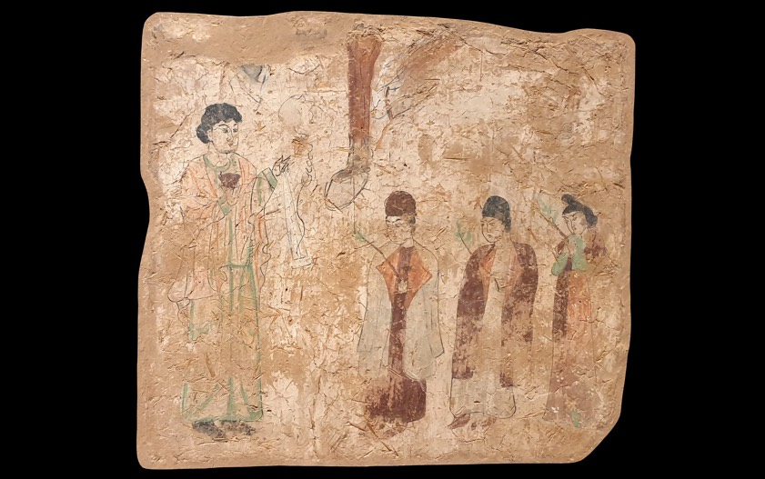 Wandmalerei des achten Jahrhunderts nach Christus aus einer Kirche in Kocho Gaochang (heute im Humboldt-Forum Berlin).