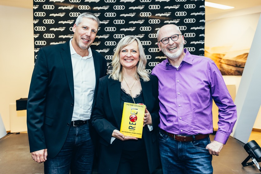 Geschäftsführer Michael Stiglmayr (links), Marketing-Leiterin Martina Staud und Bestseller-Autor Peter Grandl.
