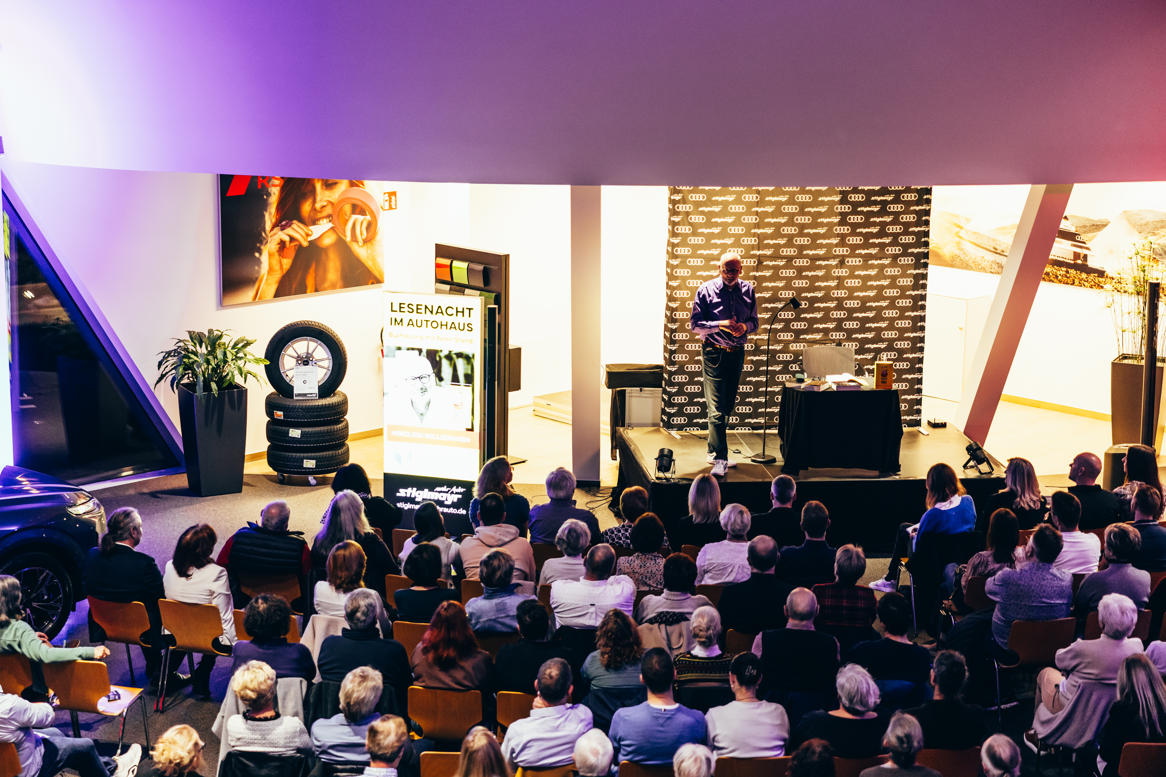 Mit einem voll besetzten (Auto)Haus und rund 250 Gästen ist die zweite Lesenacht im Audi-Terminal in Pfaffenhofen zu einem ganz besonderen Abend geworden. Bestseller-Autor Peter Grandl – bekannt durch seine Bücher wie "Turmschatten", "Turmgold", "Höllenfeuer" und seinen neuen Thriller "Reset" – fesselte das Publikum mit Einblicken in seinen Werdegang und vielen Geschichten rund um seine packenden Werke.