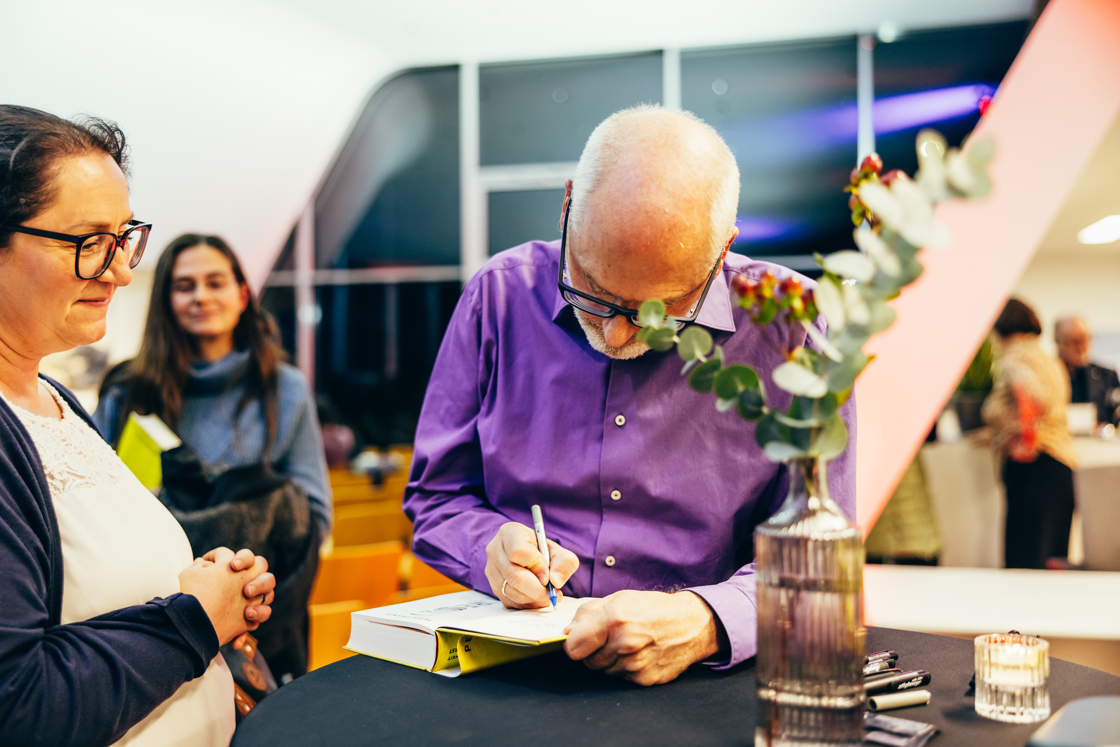 Die Gäste blieben im stilvollen Ambiente des Autohauses gerne länger, nutzten die Gelegenheit für Gespräche, holten sich persönlich signierte Exemplare von "Reset" am Büchertisch der Buchhandlung Osiander und genossen den stimmungsvollen Ausklang bei einem Getränk.
