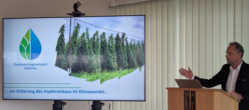 Auch die Hallertau wolle sich fit für die Zukunft machen und für mehr Stabilität in der Hopfen-Produktion sorgen. Deshalb werde bereits seit mehreren Jahren zusammen mit den zuständigen Ministerien, Wasserwirtschaftsämtern und Landratsämtern intensiv an der Entwicklung einer nachhaltigen und leistungsfähigen Bewässerung gearbeitet. Ziel aller Beteiligten sei es, in naher Zukunft eine Anlage zu errichten, die in trockenen Sommern dem "Grünen Gold" der Hallertau das Wasser zur Verfügung stellt, um den Trocken-Stress der Pflanzen abzumildern.
